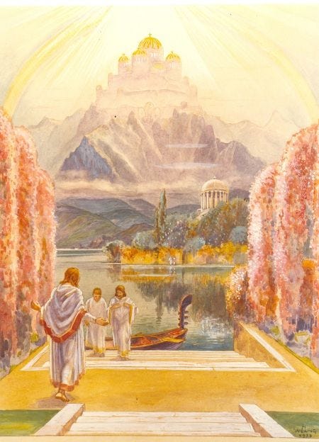 The Father sees an image of the New Jerusalem. It’s a paradisal city filled with Saints and the Lamb of God.