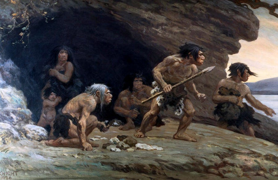 Mankind is a product of evolution, descended from apes, gradually awakening into pure rationality. Once we were cavemen—mistaking lightning for God and scratching primitive images onto stone. Over time, we shed this ignorance, gained mastery over nature, and outgrew superstition. Religion, on this view, was merely a transitional phase in humanity’s ascent.